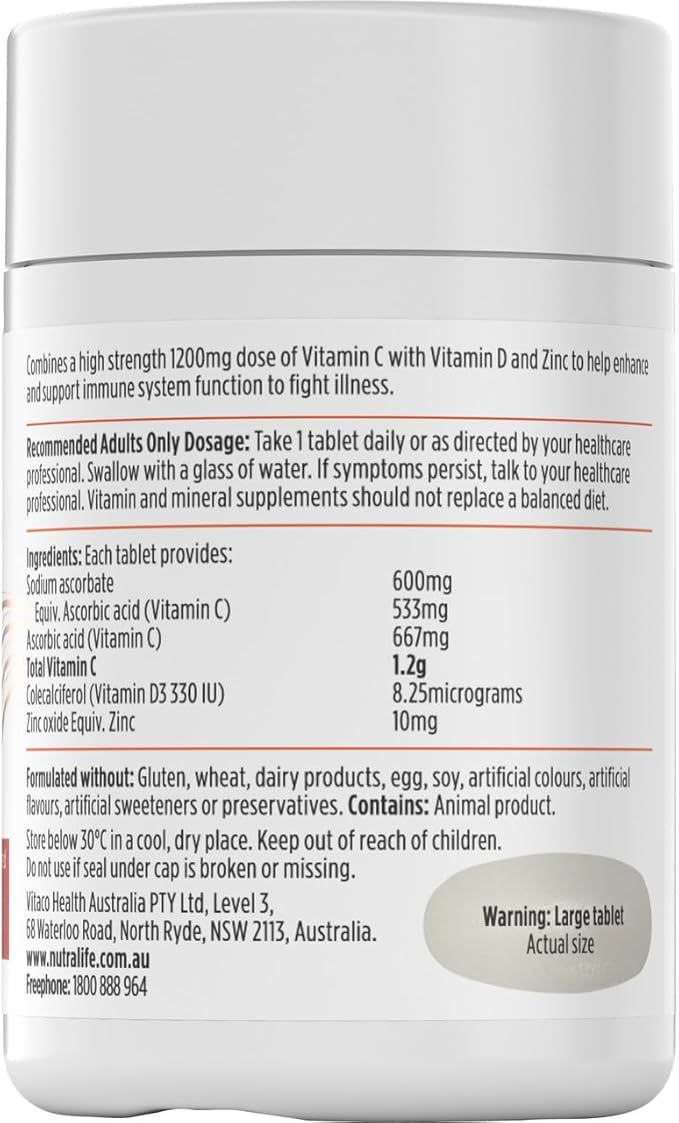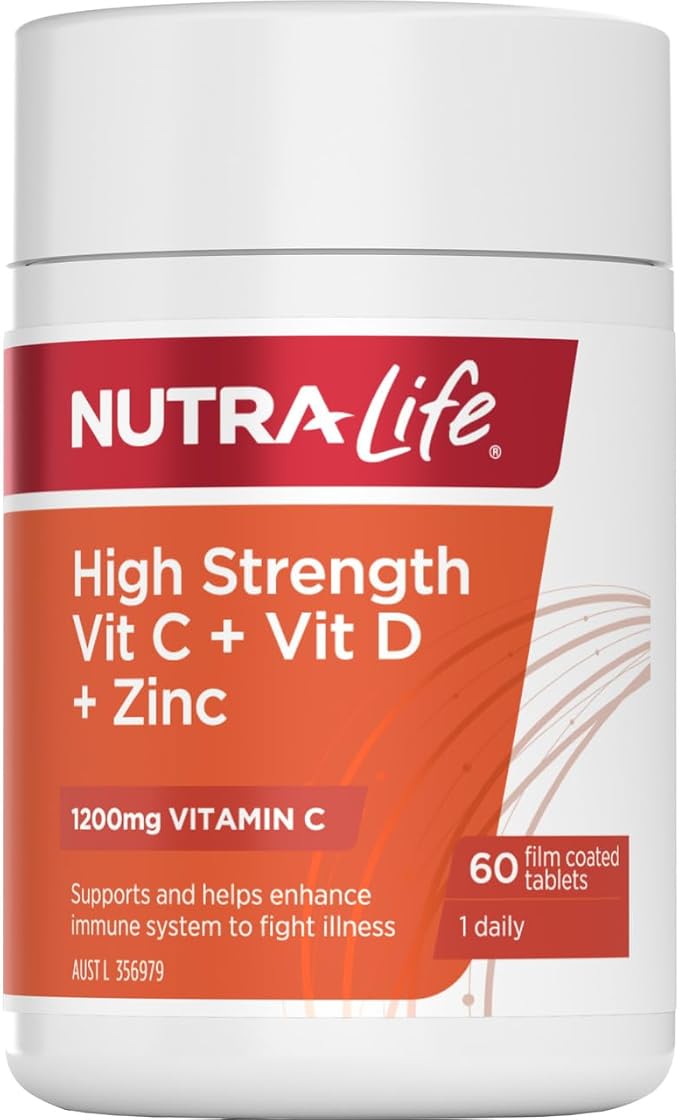 Nutra-Life High Strength Vit C + Vit D + Zinc combines a high strength 1200mg dose of Vitamin C with Vitamin D & Zinc to support & help enhance immune system function and fight illness.